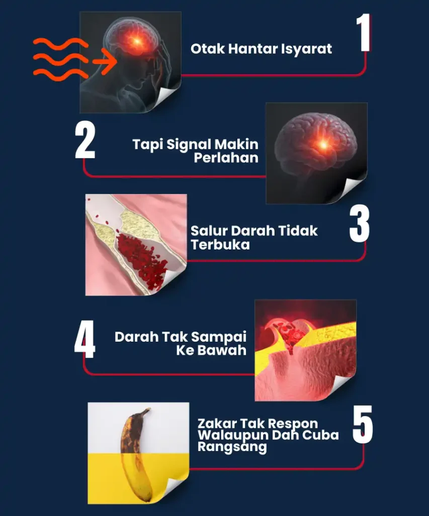 Lambat naik, susah keras, makin lembik. Puncanya? Nitric Oxide (NO) makin berkurang. Bila NO kurang, otak tak dapat arahkan darah ke zakar seperti biasa