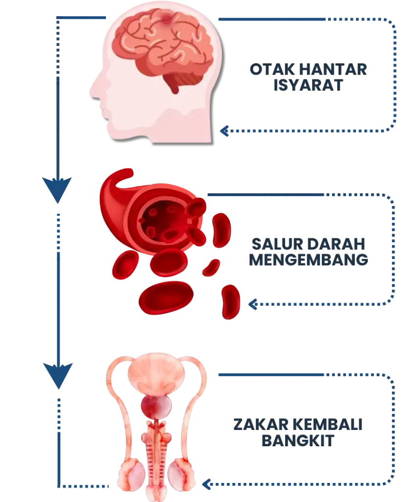Tubuh mula hasilkan Nitric Oxide semula, zakar kembali beri respon, tenaga & keyakinan pun naik semula.
