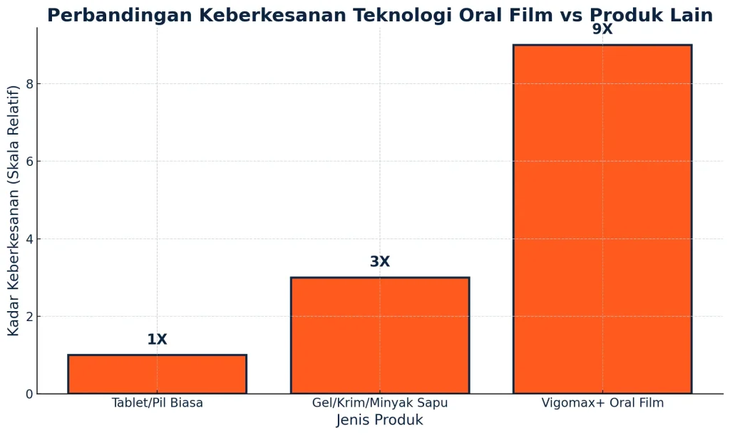 Kenapa Vigomax+ 9X lebh baik berbanding lain sebabnya guna teknologi oral film yang larut bawah lidah.